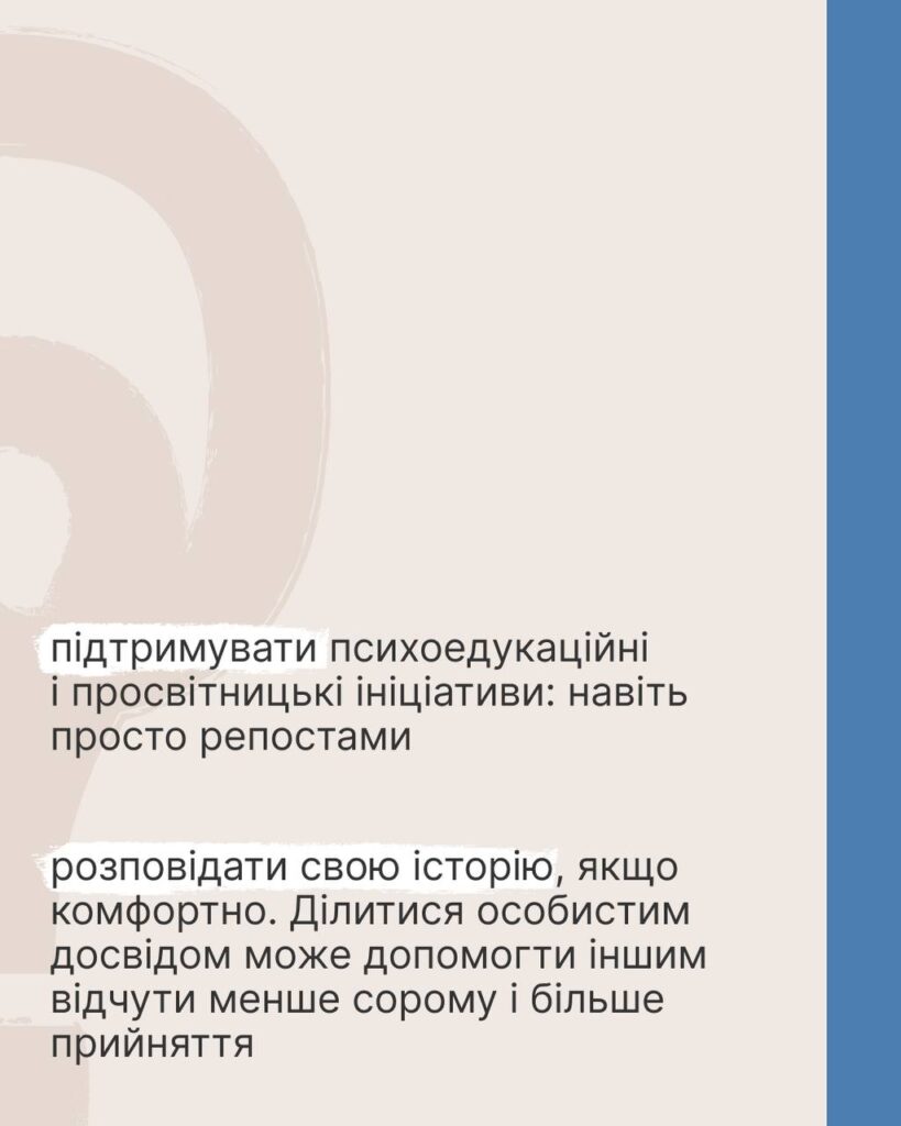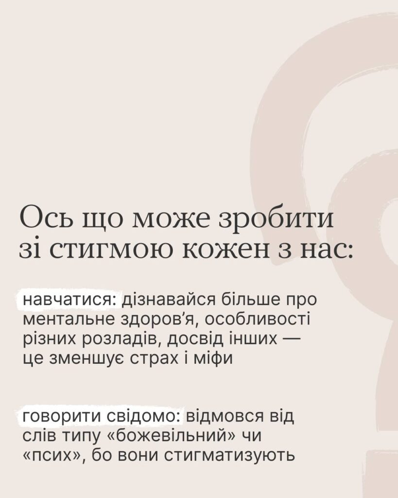 У межах Всеукраїнської програми ментального здоров’я «Ти як?» підготовлено картинки про те, чому небезпечна стигма і як кожен із нас може допомогти зменшити її силу.