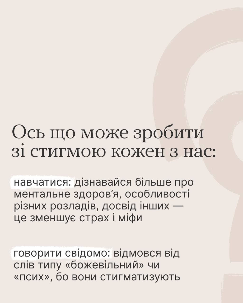 У межах Всеукраїнської програми ментального здоров’я «Ти як?» підготовлено картинки про те, чому небезпечна стигма і як кожен із нас може допомогти зменшити її силу.