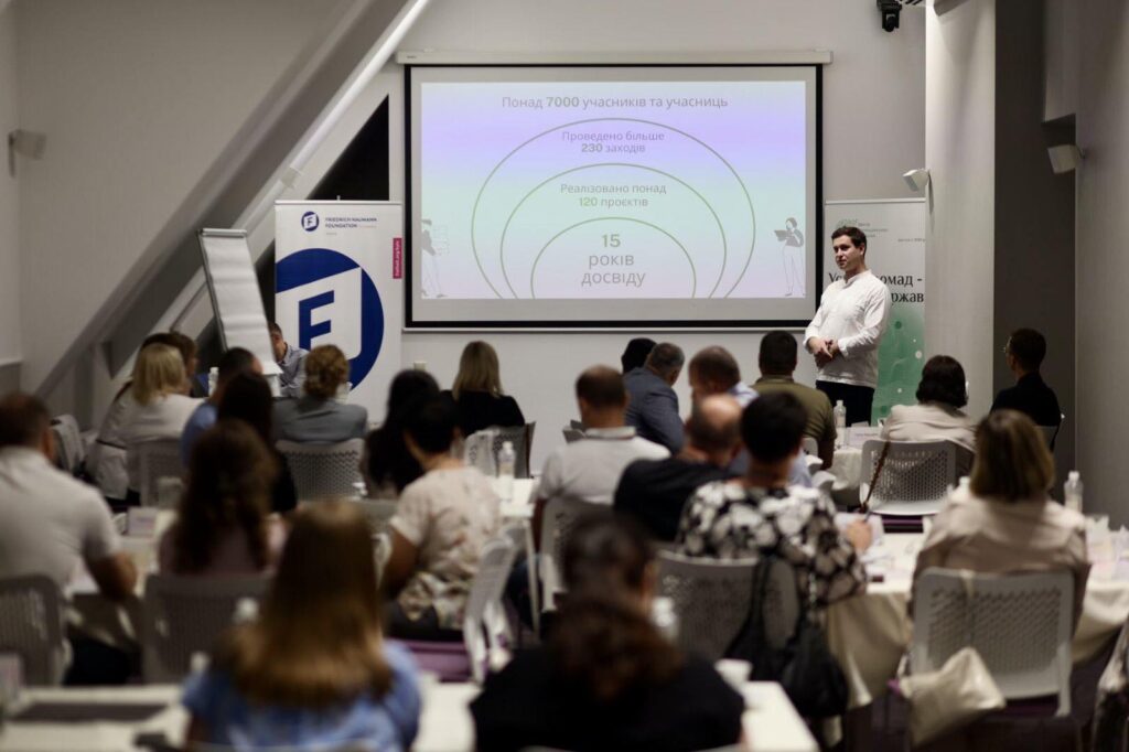 30 лідерів і лідерок громад з усієї України зібралися разом, щоб навчатися, обмінюватися досвідом та будувати нову якість управління. Серед учасників – представник Новокаховської міської військової адміністрації, який долучився до діалогу про ефективні рішення, лідерство в умовах кризи, стратегії розвитку та цифрові інструменти для громад.