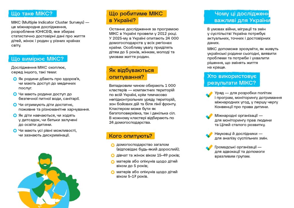 Держстат України у партнерстві з ЮНІСЕФ розпочинає реалізацію Мультиіндикаторного кластерного обстеження домогосподарств (МІКС) у 2025 році.