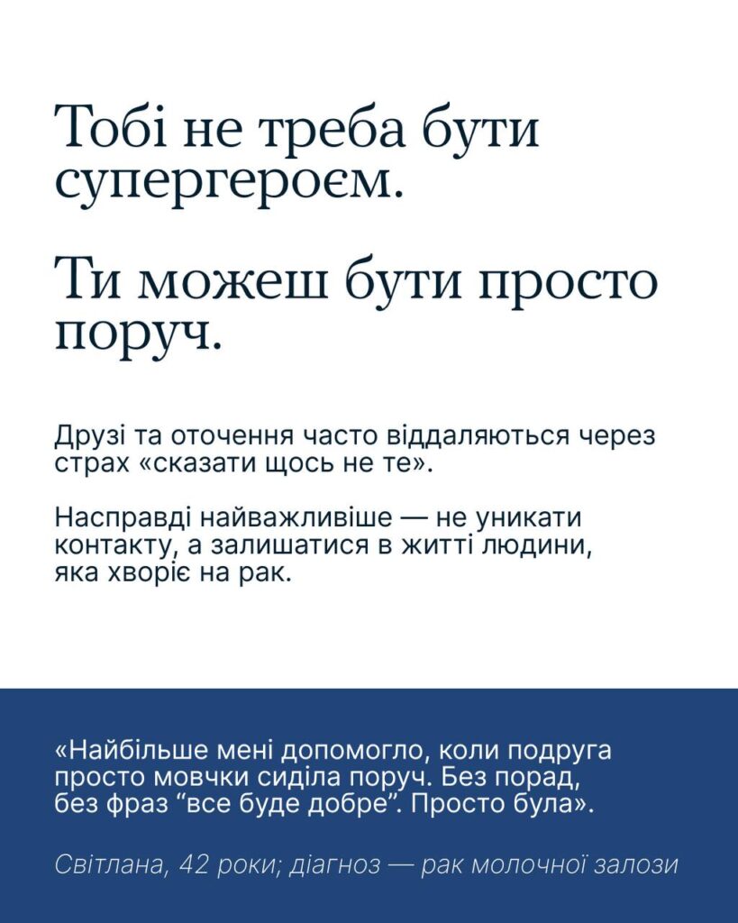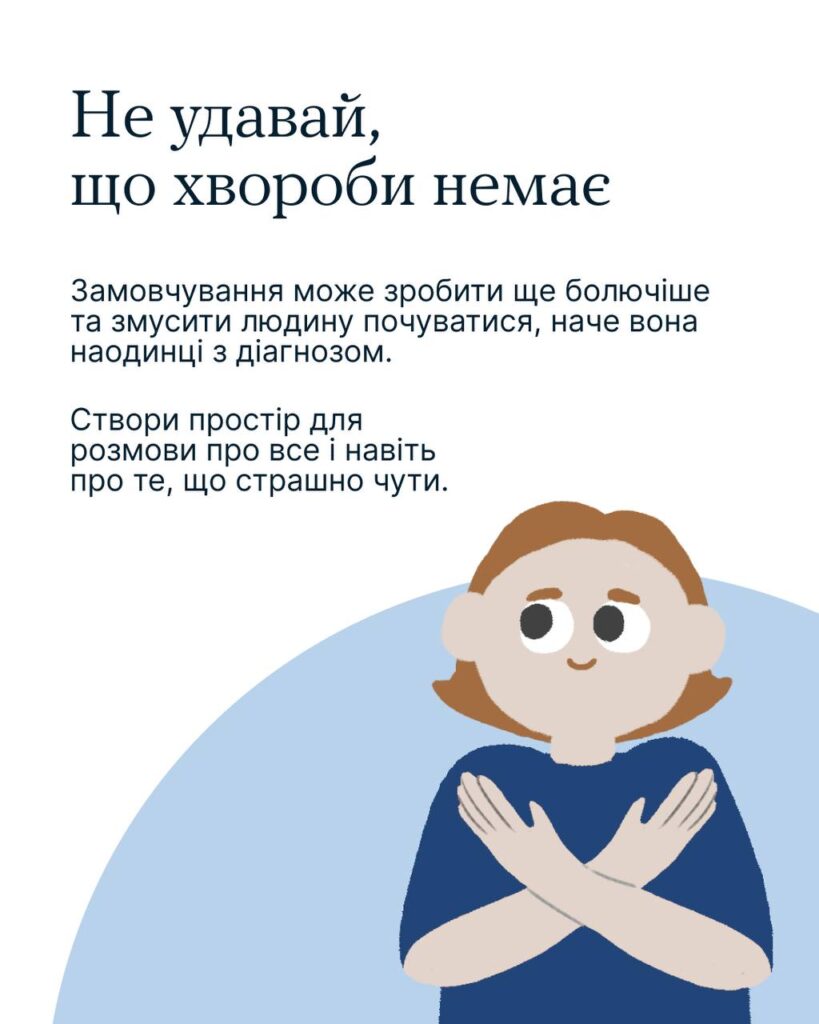 Спільно з БФ «Місія Харків» Всеукраїнська програма ментального здоров’я «Ти як?» підготувала рекомендації для тих, хто хоче бути поруч і підтримати близьку людину у боротьбі з онкологічним захворюванням: як діяти, що говорити, аби не завдати болю та бути справжньою опорою.