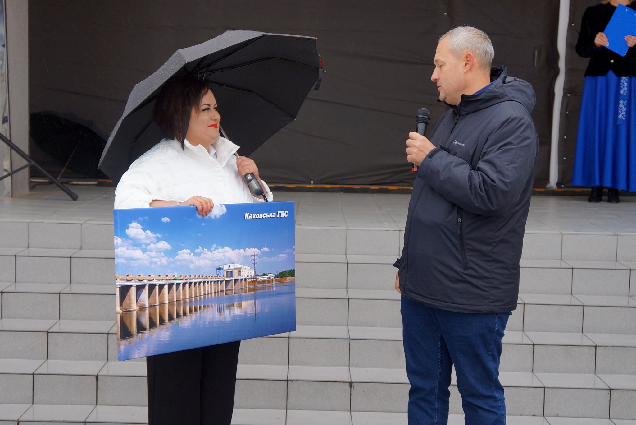 Під час урочистостей начальник Новокаховської МВА привітав жителів Новодністровська та подякував за підтримку, а також передав міській голові Наталі ЦИМБАЛЮК символічний подарунок – картину із зображенням Каховської ГЕС, як знак вдячності за відкритість до співпраці та готовність діяти разом.