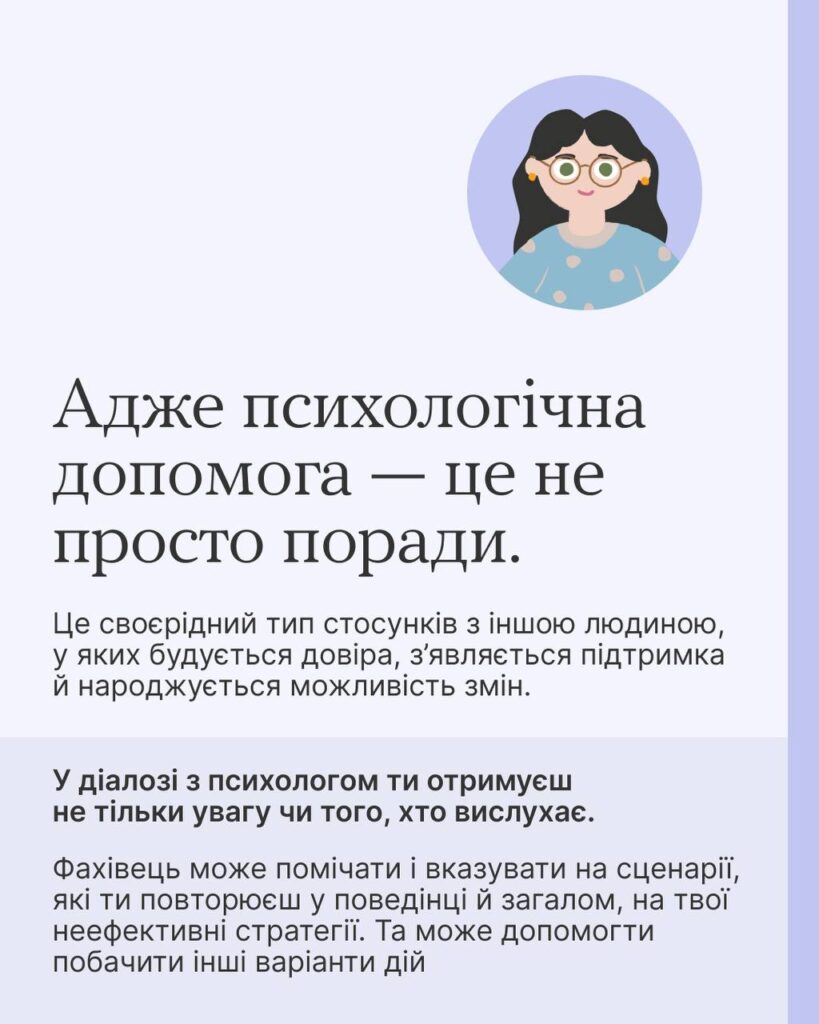 Але справжня психологічна підтримка ґрунтується на живому контакті – на стосунках із фахівцем, який має знання й досвід, щоб допомогти саме вам.