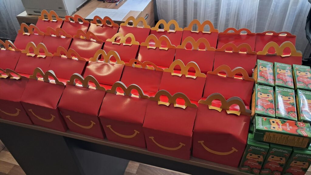 09 жовтня 2025 року для 30 дітей Новокаховської громади, які через війну були змушені залишити свої домівки та нині проживають у місті Кривий Ріг, відбувся благодійний захід – пригощання дітей наборами «Happy Meal» та соками.