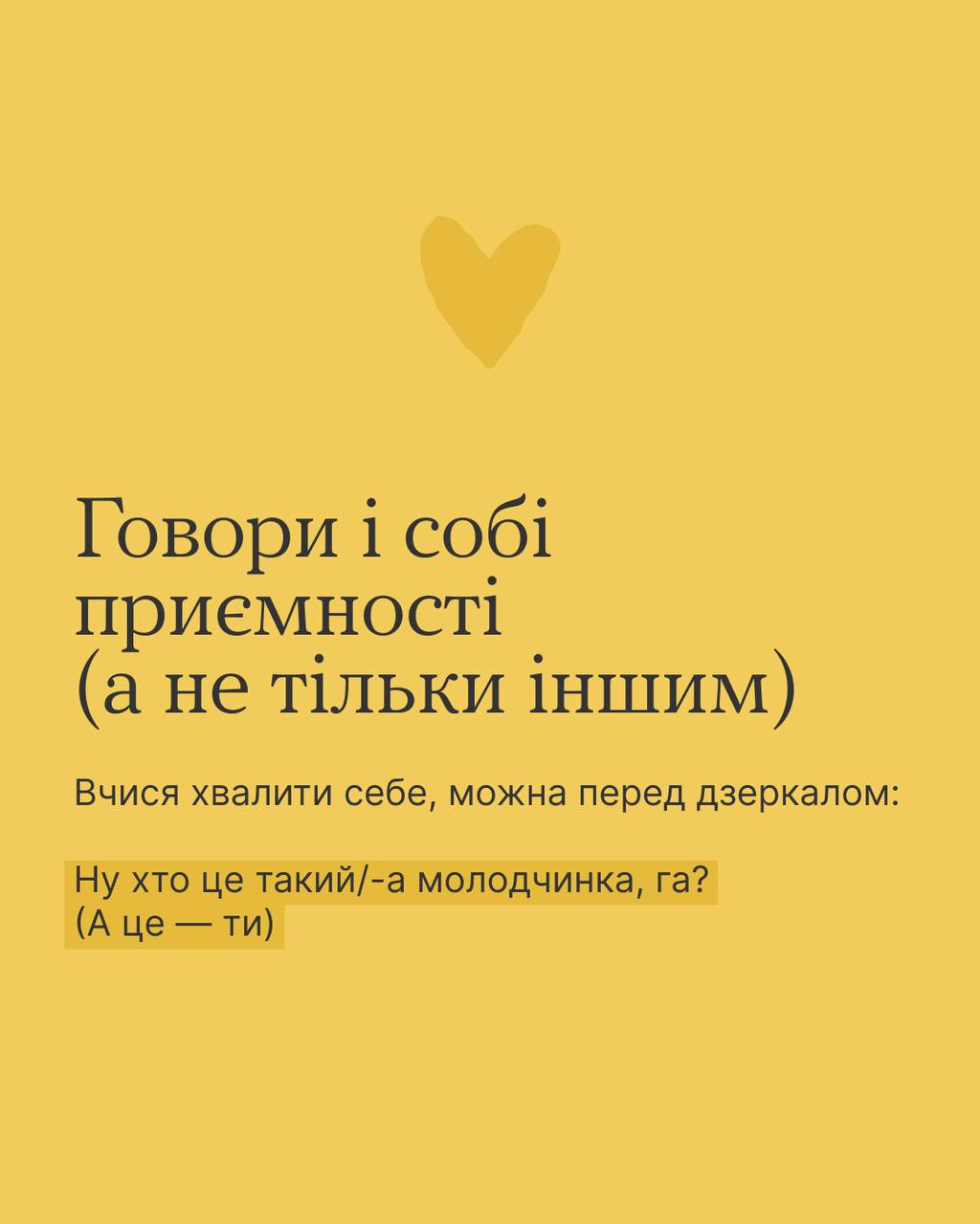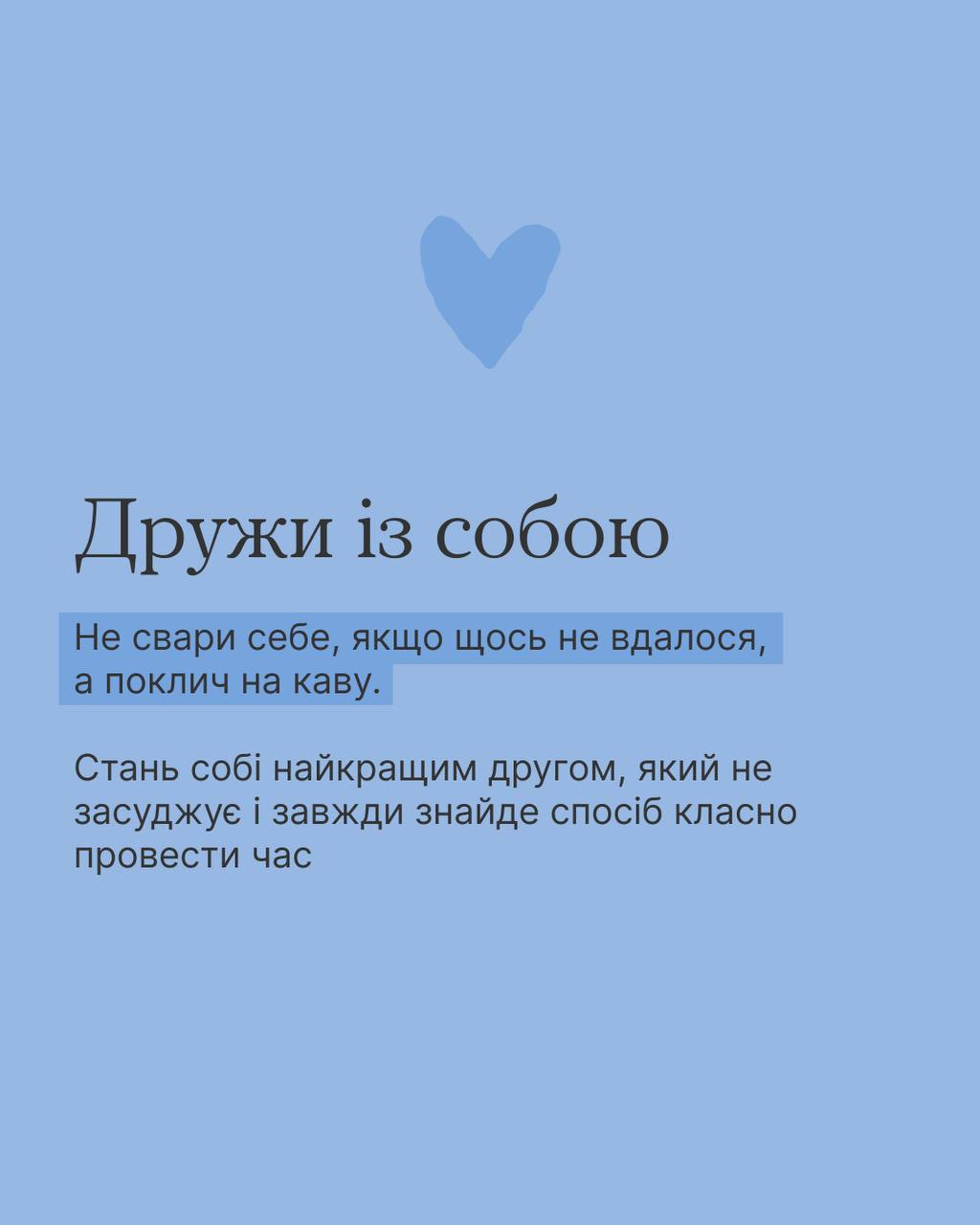 Не вимагайте від себе надмірного. Всеукраїнська програма ментального здоров’я «Ти як?» зібрала п’ять порад, які допоможуть дбати про себе щодня.
