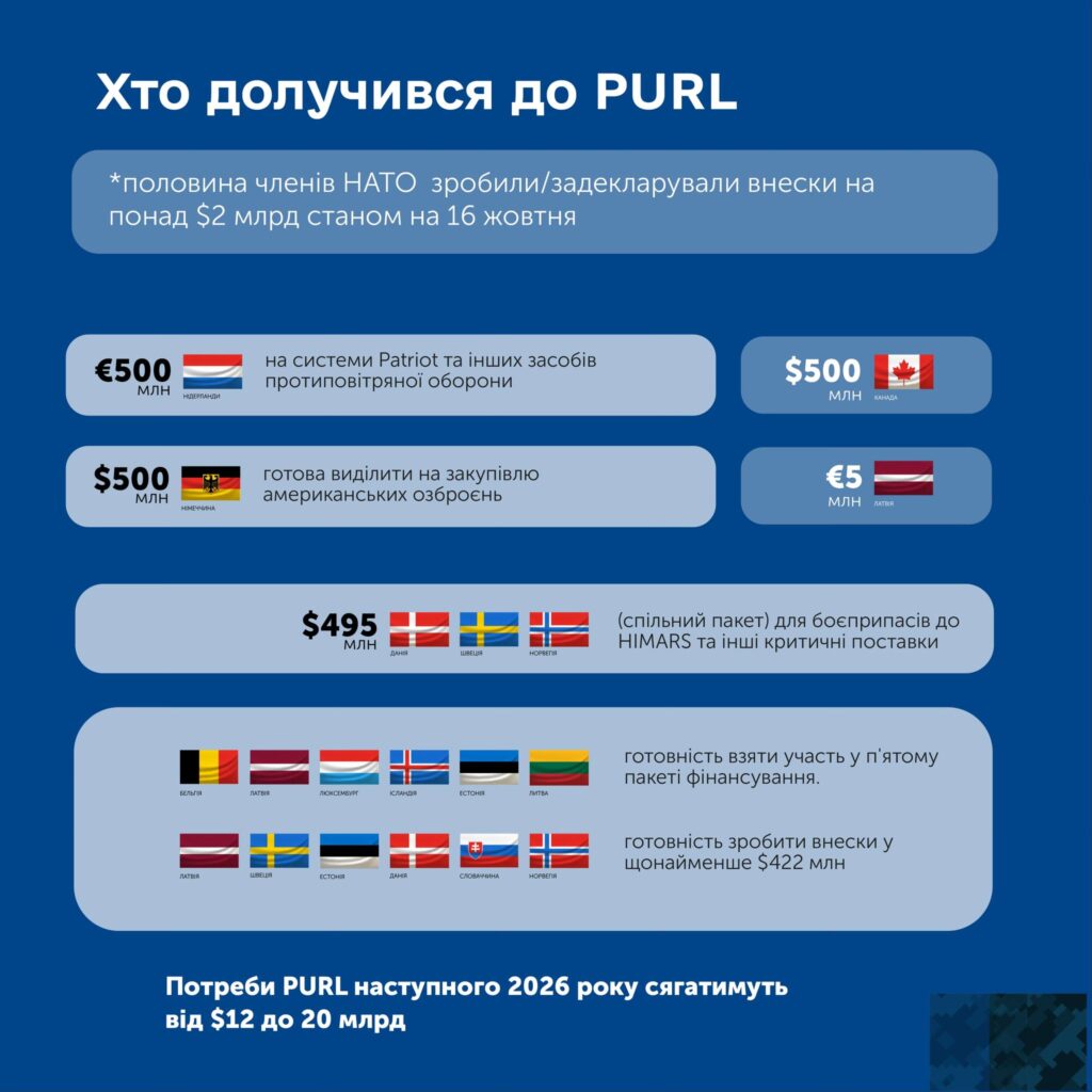 Так зокрема ініціатива PURL дозволяє швидше закривати критичні потреби України – від ППО до артилерійських боєприпасів.