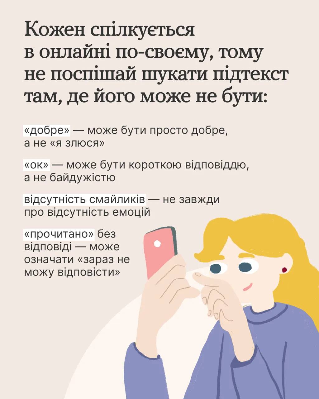 А в ілюстративних матеріалах – кілька підказок, як менше хвилюватися через повідомлення. Спробуйте, якщо щось вибиває вас із внутрішньої рівноваги.