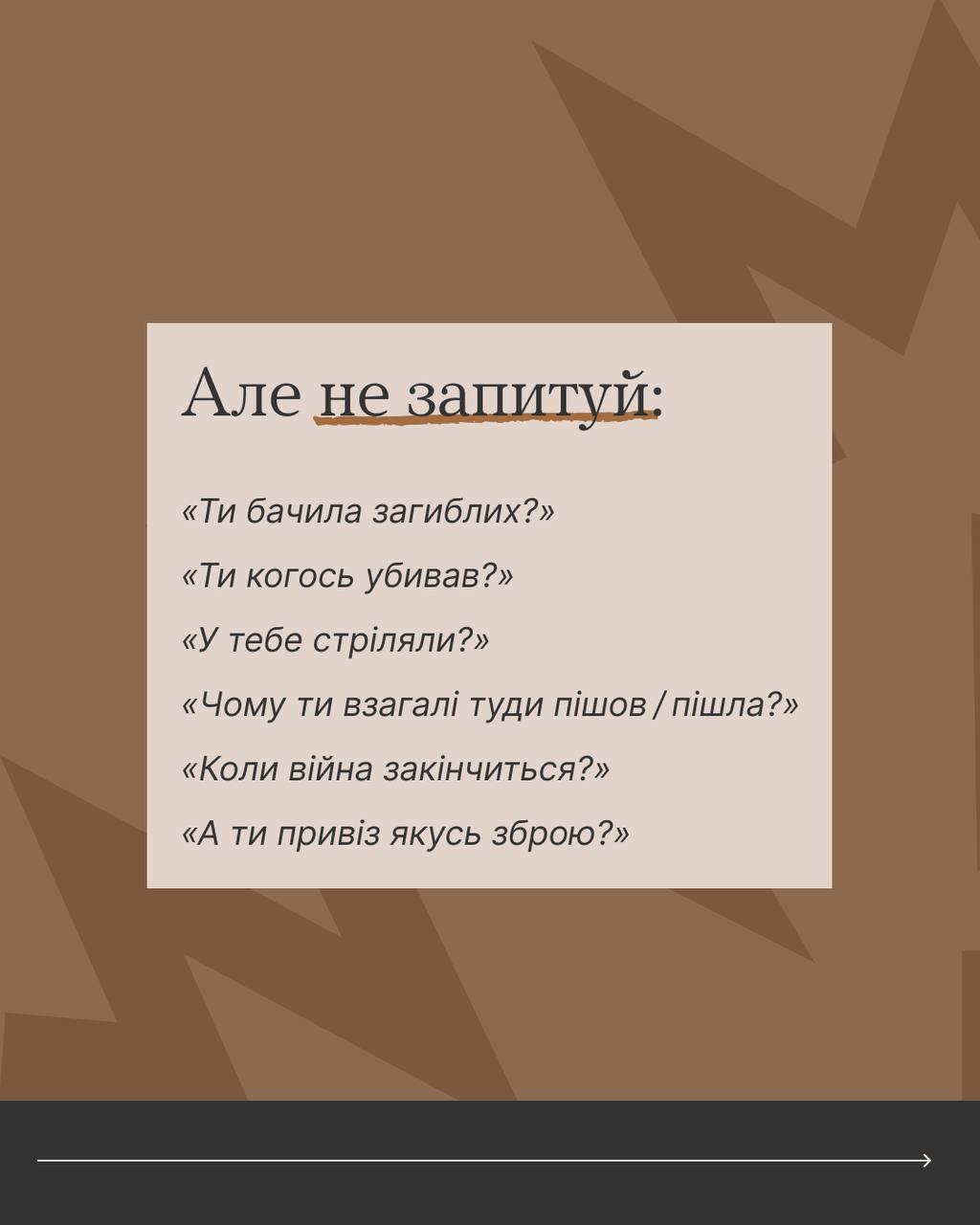 Спілкування з тими, хто пройшов через війну, вимагає уваги, поваги та такту. Важливо пам’ятати, що кожна історія унікальна, і не всі готові ділитися пережитим.