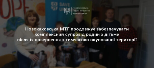 У межах реалізації пілотної ініціативи начальником Новокаховської міської військової адміністрації Олегом ТАРАБАКОЮ, начальницею служби у справах дітей Оксаною ПОПОВИЧЕНКО та директоркою КУ «Інклюзивно-ресурсний центр» Мариною СКРИПНІКОВОЮ здійснено відвідування шести родин з дітьми, які повернулися з тимчасово окупованої території Новокаховської громади та наразі проживають у Київській області.