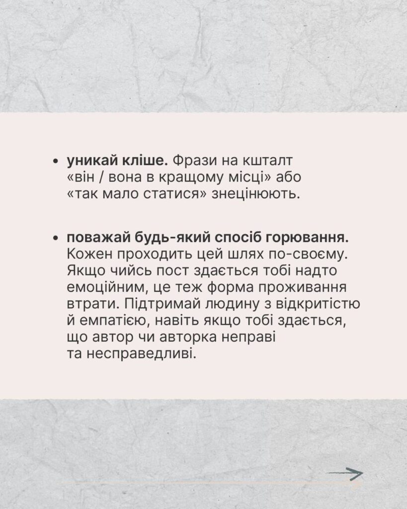 Це досвід, який потребує тиші, делікатності й поваги. І саме ми формуємо, наскільки чутливим та безпечним буде наш спільний онлайн-простір.