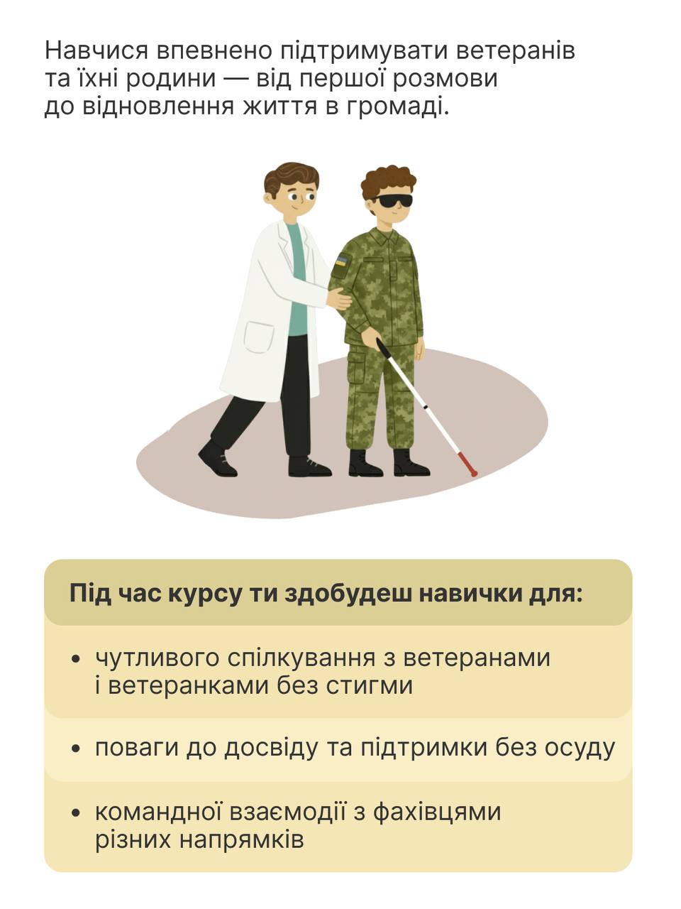 Медичні працівники, які у своїй професійній діяльності взаємодіють із ветеранами та ветеранками війни, мають можливість підвищити рівень комунікаційної компетентності та впевненості у спілкуванні.