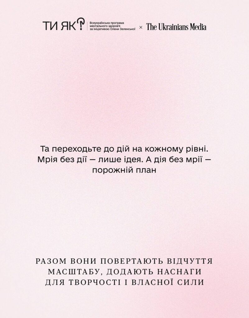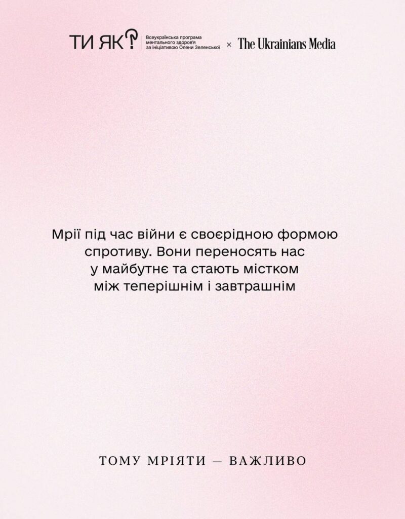 Разом із The Ukrainians Media та психологинею Світланою Ройз Всеукраїнська програма ментального здоров’я «Ти як?» пропонує осмислити, чому мріяти сьогодні є важливою складовою психологічної стійкості та чому цілком природно, якщо вам іноді складно дозволити собі мріяти.
