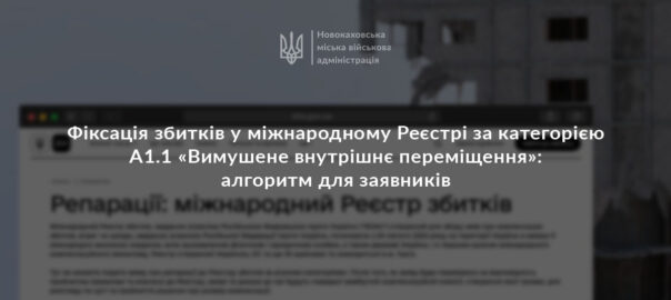 У Реєстрі збитків для України триває прийом заяв за категорією А1.1 «Вимушене внутрішнє переміщення». Подати заяву за даною категорією можуть особи, чиє внутрішнє переміщення було спричинене повномасштабним російським вторгненням, починаючи з 24 лютого 2022 року, та які: