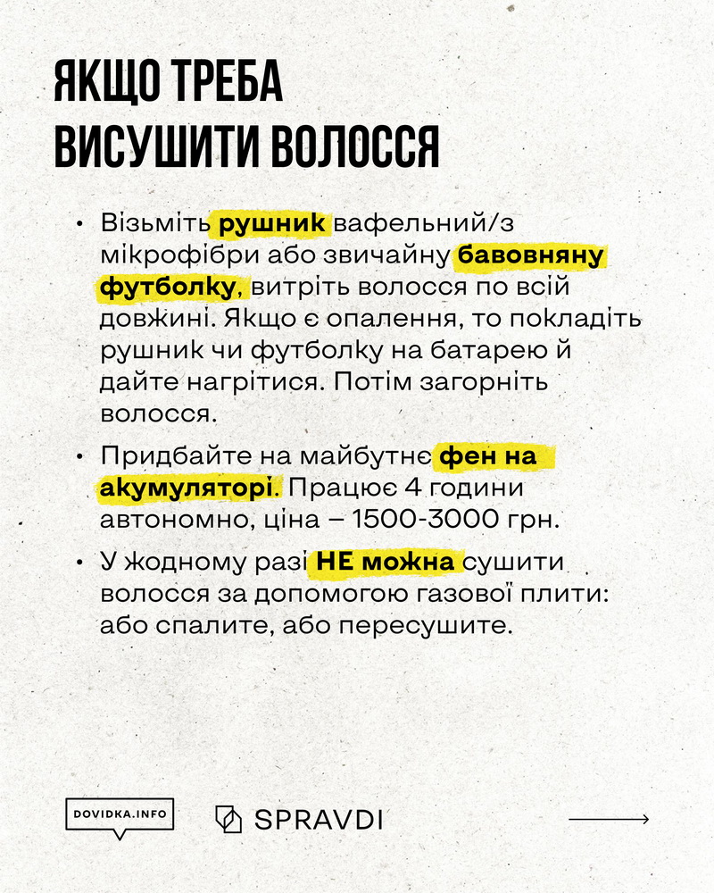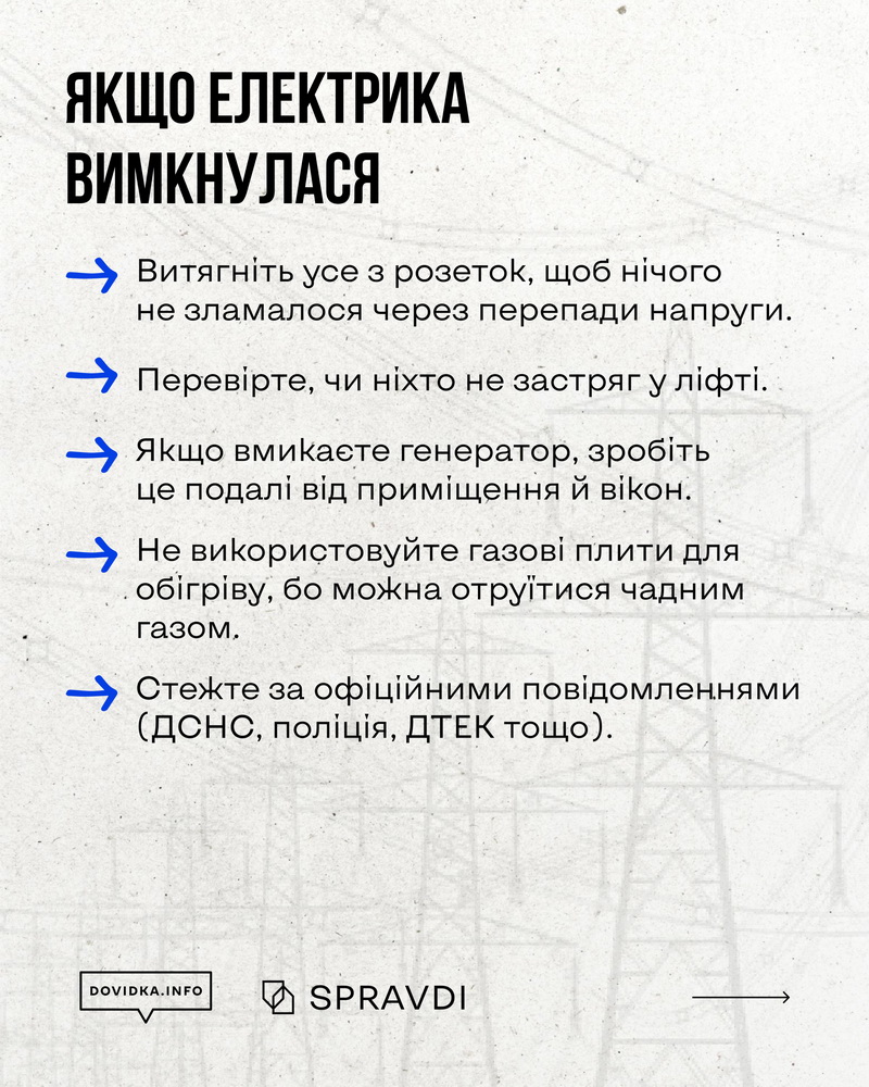 Додатково на офіційному сайті опубліковано добірку порад і алгоритмів дій на випадок блекауту: https://dovidka.info/pidgotovka-do-zymy-v-umovah-vijny/.
