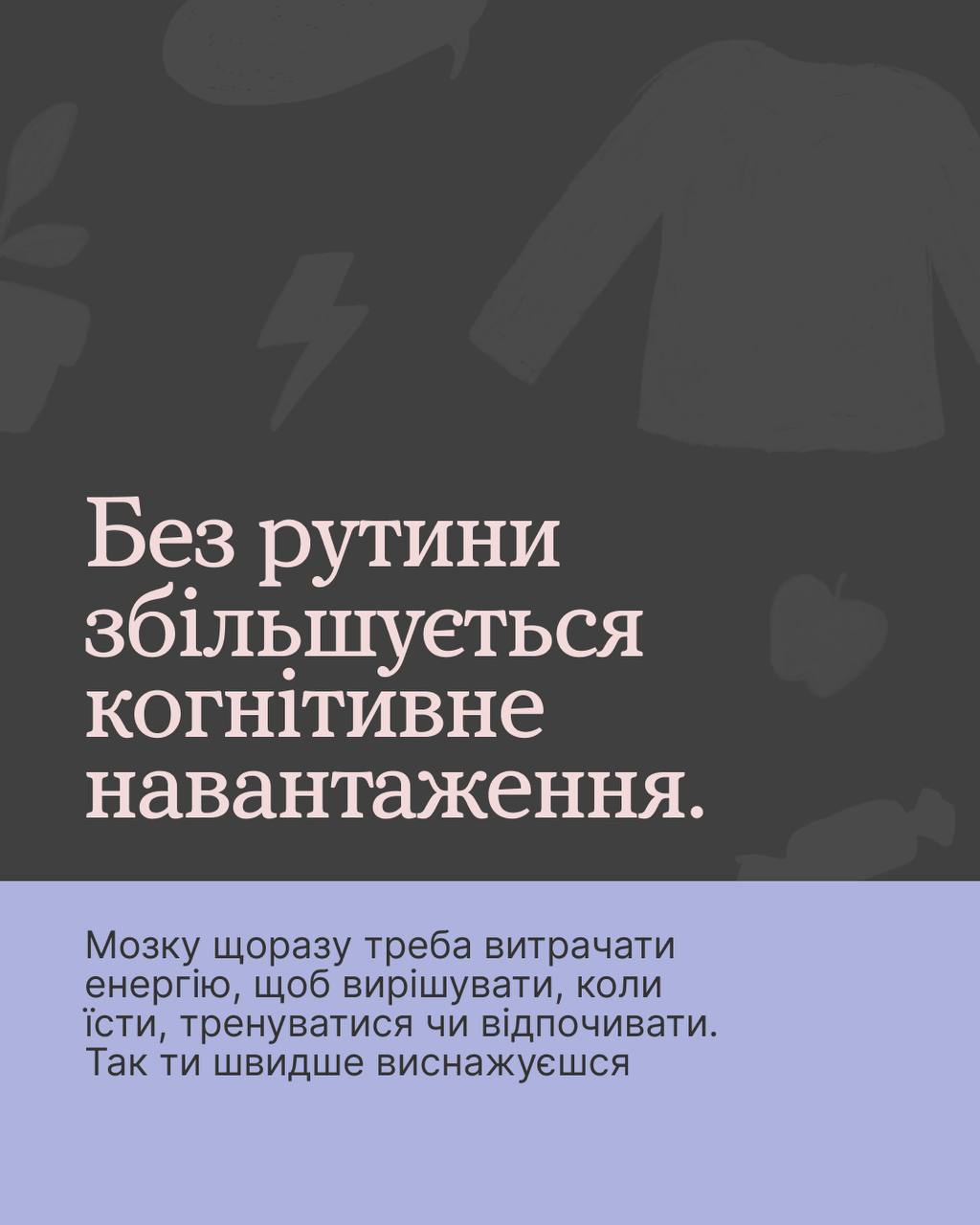 Регулярні повторювані дії у повсякденному житті допомагають структуровано організовувати час і знижувати рівень стресу. Якщо у вашому житті немає певної рутини, варто оцінити, які можливості ви втрачаєте без неї.