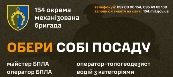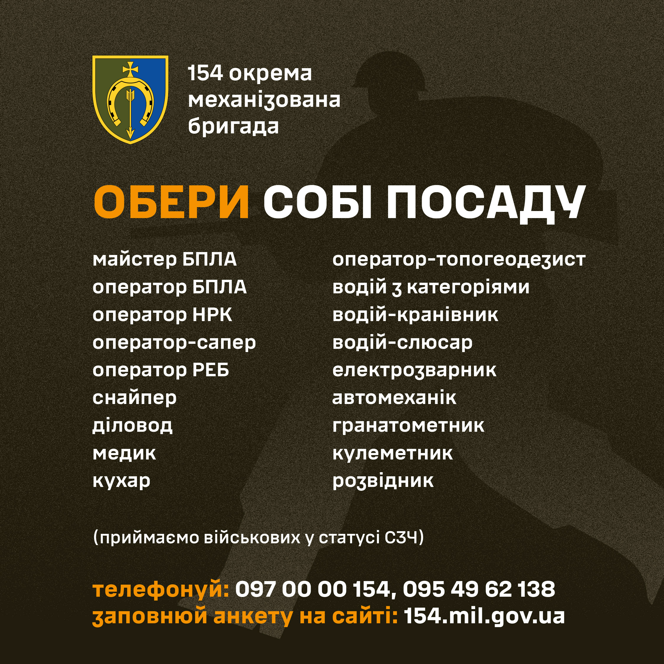 154-та окрема механізована бригада 16-го армійського корпусу оперативного командування «Північ» Збройних Сил України проводить набір кандидатів на проходження військової служби.