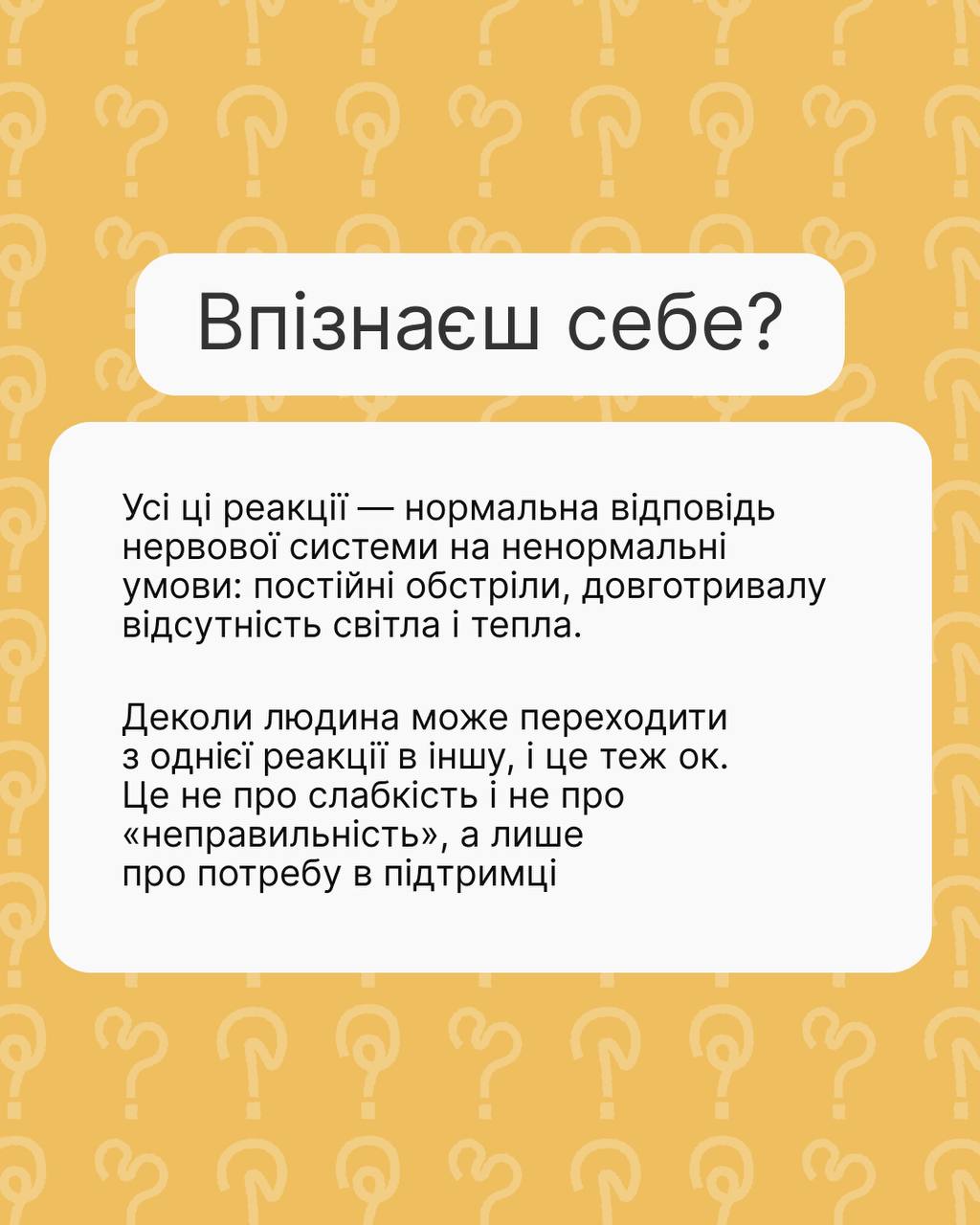 У періоди тривалих відключень електроенергії та опалення люди можуть відчувати злість, тривогу, розгубленість або апатію – і це є природною реакцією на стресові обставини.