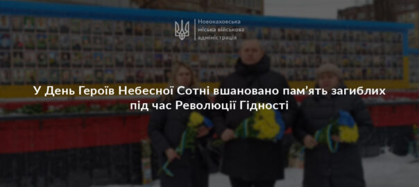 20 лютого 2026 року, у День Героїв Небесної Сотні, начальник Новокаховської міської військової адміністрації Олег ТАРАБАКА спільно з начальницями відділів освіти та культури Новокаховської міської ради вшанували пам’ять загиблих під час подій Революції Гідності, поклавши квіти до Народної Стели Героїв у місті Кривий Ріг.