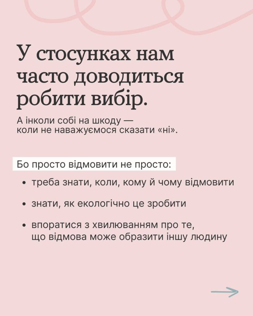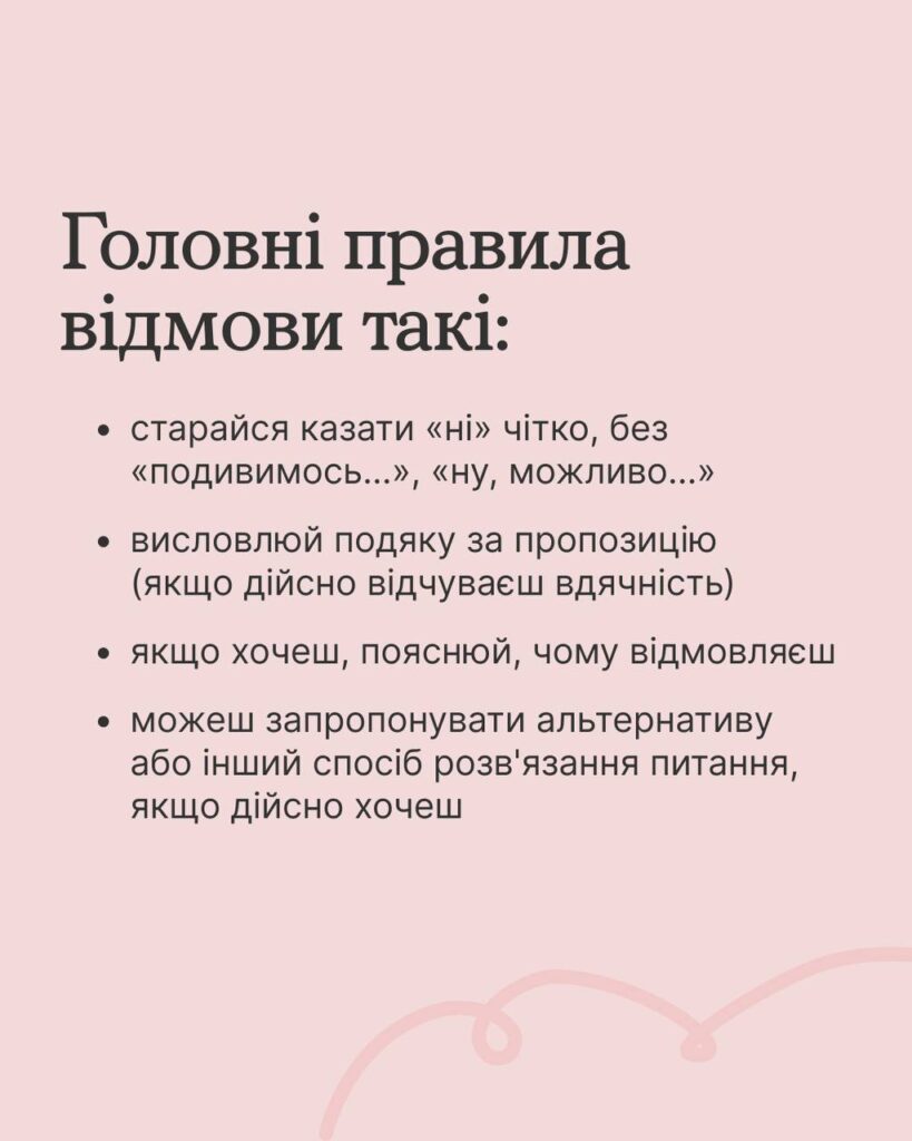 Право відмовити – це право дбати про себе. А люди, які цінують нас по-справжньому, поважатимуть і наші межі.
