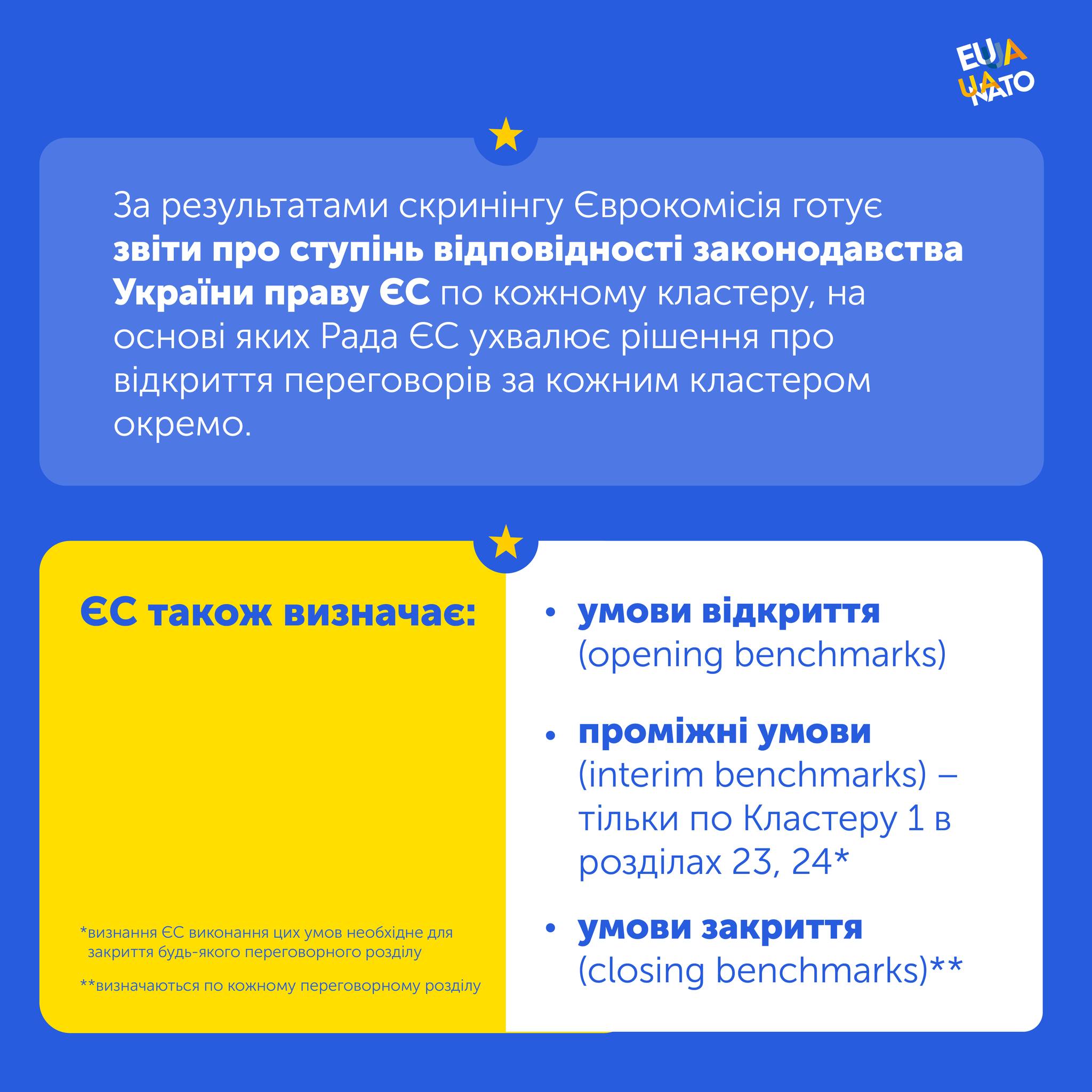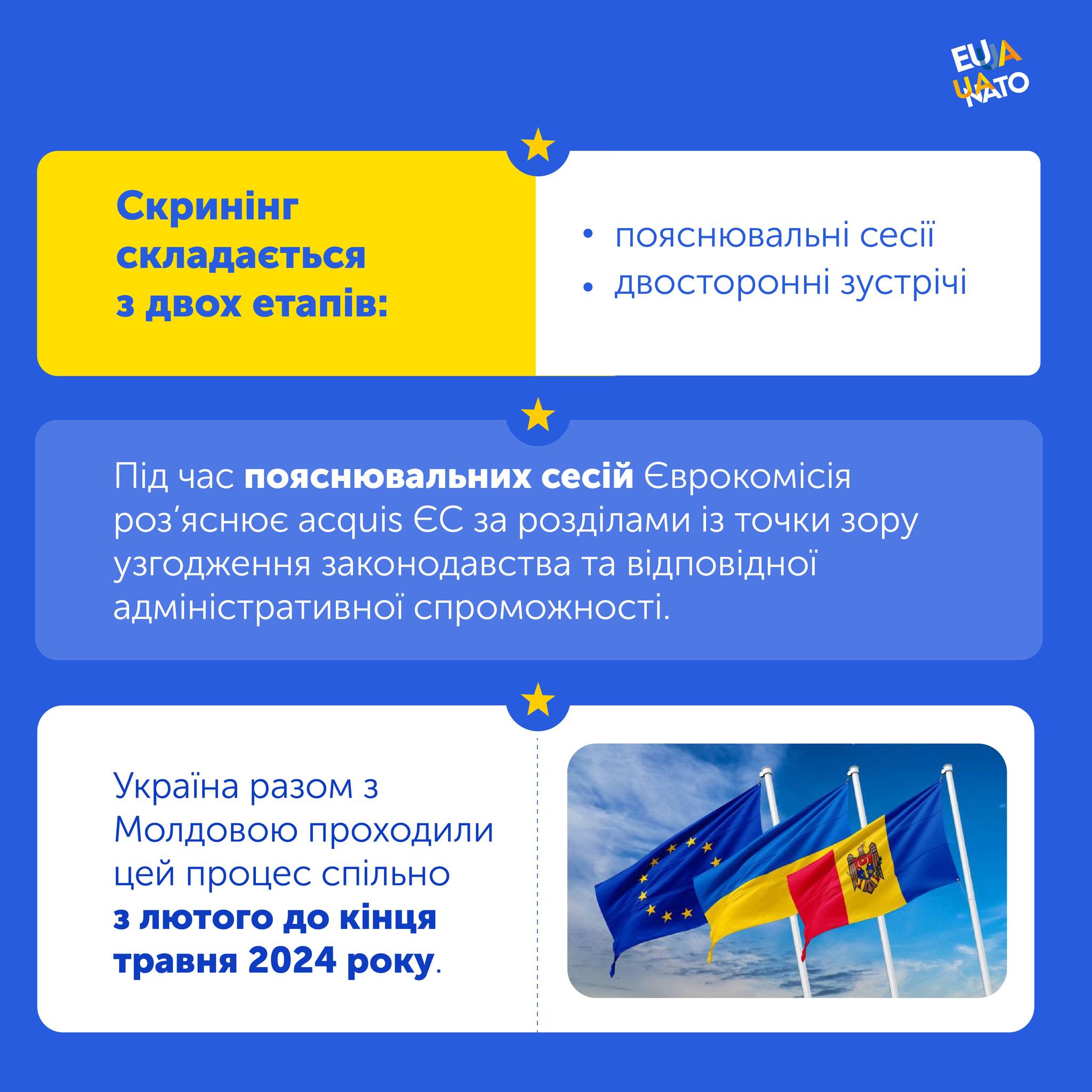 Офіс Віцепрем’єр-міністра з питань європейської та євроатлантичної інтеграції продовжує інформувати громадськість про шлях України до членства в Європейському Союзі, зокрема про один із ключових етапів переговорного процесу – процедуру скринінгу.