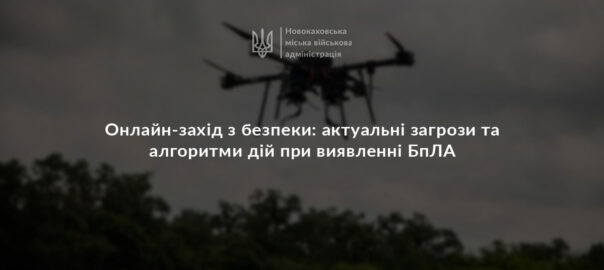 Працівники Новокаховської міської військової адміністрації та структурних підрозділів міської ради взяли участь в інтерактивному онлайн-заході на тему: «Актуальні загрози та способи захисту: безпілотні літальні апарати», який проведено викладачем Навчально-методичного центру цивільного захисту та безпеки життєдіяльності Херсонської області.