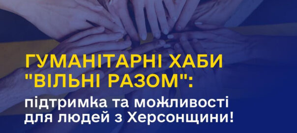 Центри «Вільні разом» – це мережа гуманітарних хабів, де жителі Херсонщини, які евакуювалися з прифронтових або тимчасово окупованих територій можуть зустрічатися та отримувати допомогу у вигляді продуктових та гігієнічних наборів, юридичних та психологічних консультацій, медичних послуг. Такі осередки функціонують у 12 українських містах.