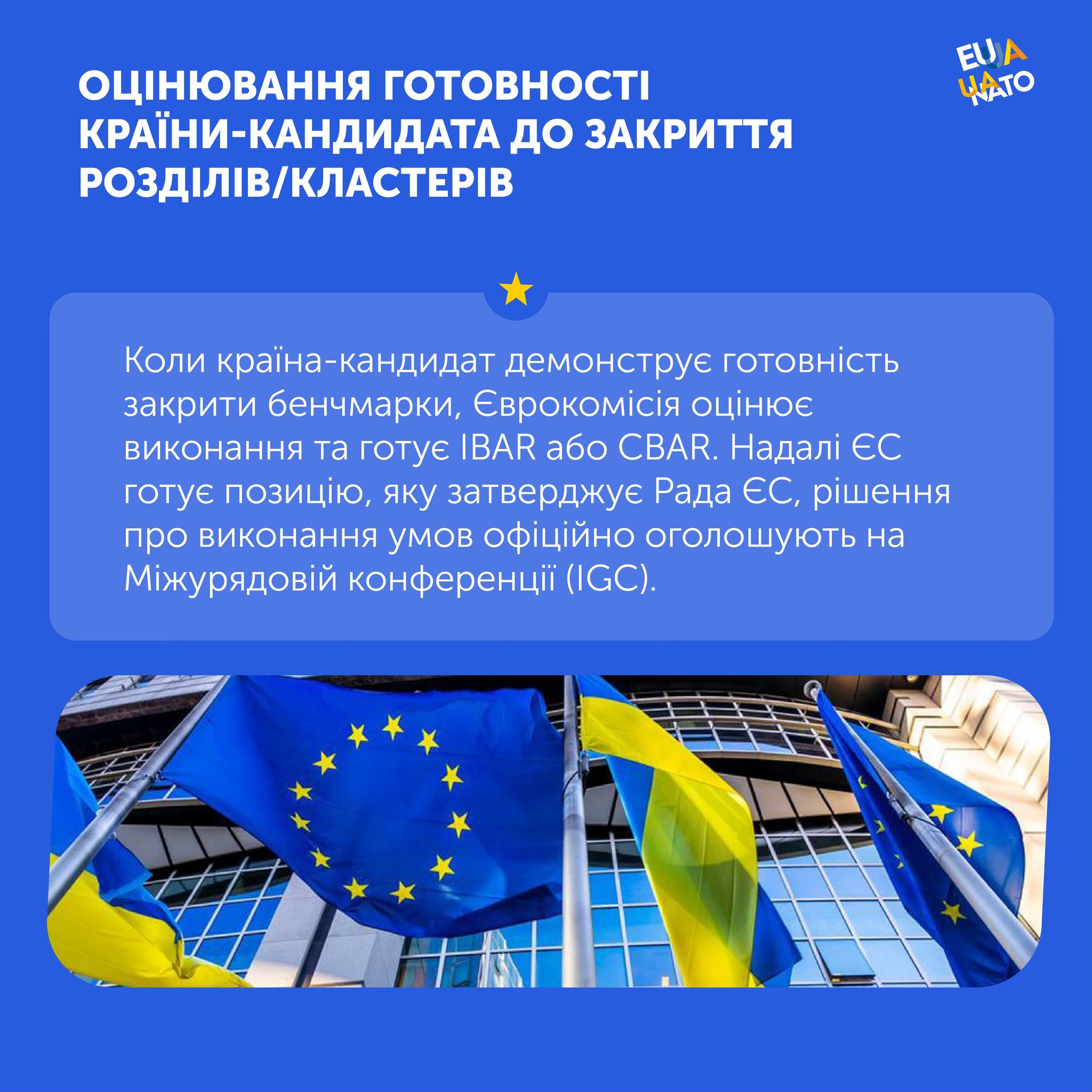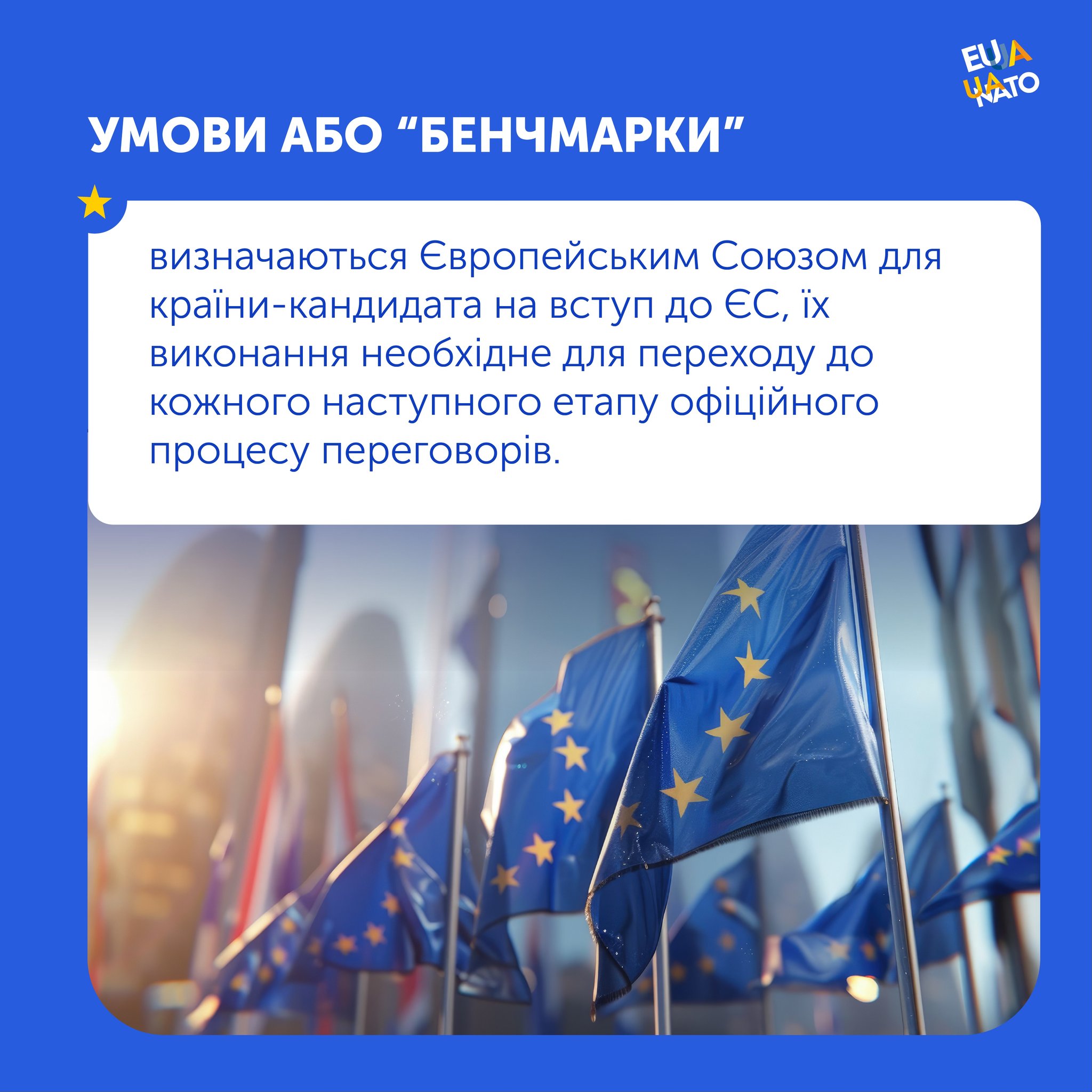 Продовжується інформування про ключові етапи переговорного процесу щодо вступу України до Європейського Союзу. Сьогоднішній матеріал присвячено умовам подальшого прогресу – так званим «бенчмаркам».