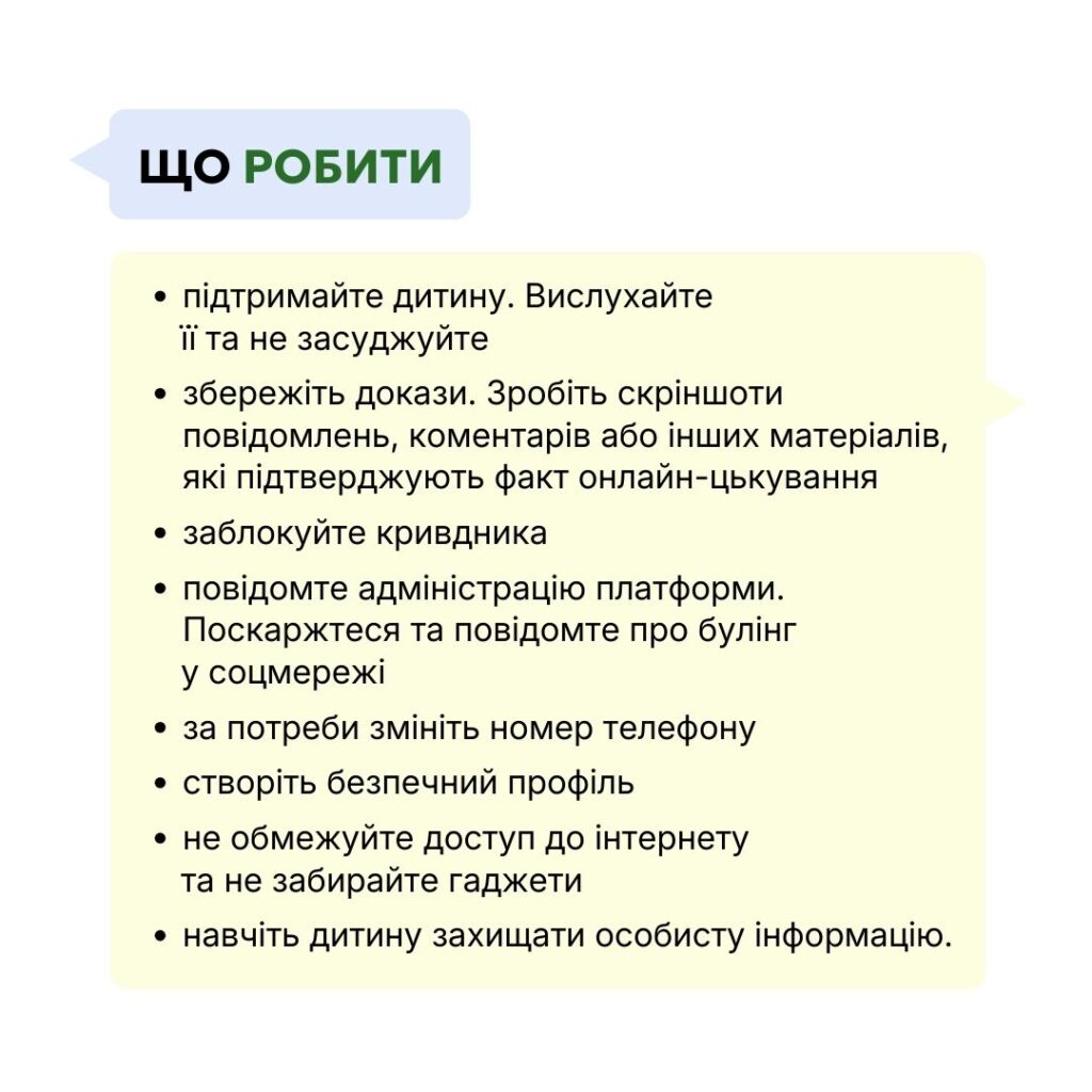 Кібербулінг – це форма булінгу, що здійснюється із застосуванням цифрових технологій. Важливо своєчасно виявляти його ознаки та володіти інформацією щодо належного алгоритму дій з метою підтримки дитини та припинення онлайн-цькування.