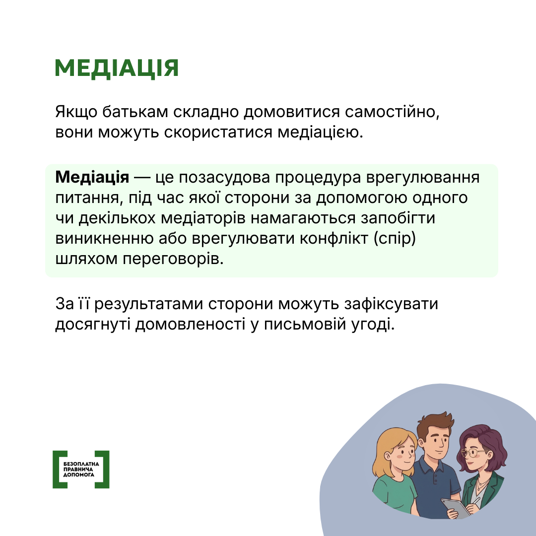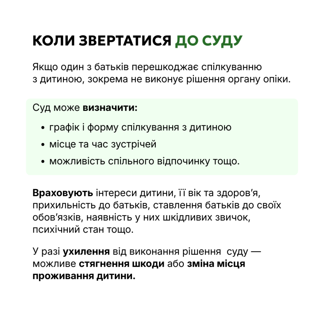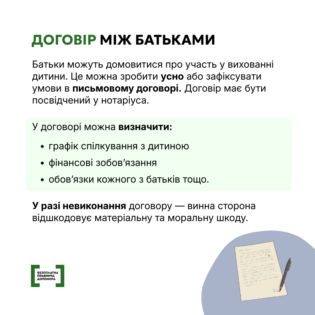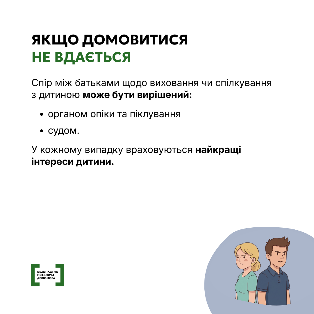 Детальніше про порядок вирішення спорів щодо участі у вихованні дитини – в інформаційних матеріалах.