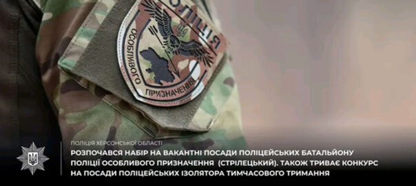Каховський районний відділ поліції інформує, що Головним управлінням Національної поліції в Херсонській області 01 квітня 2026 року оголошено конкурс на зайняття вакантних посад поліцейського батальйону поліції особливого призначення (стрілецький) ГУНП. Крім того, триває набір кандидатів на посади поліцейського ізолятору тимчасового тримання ГУНП.