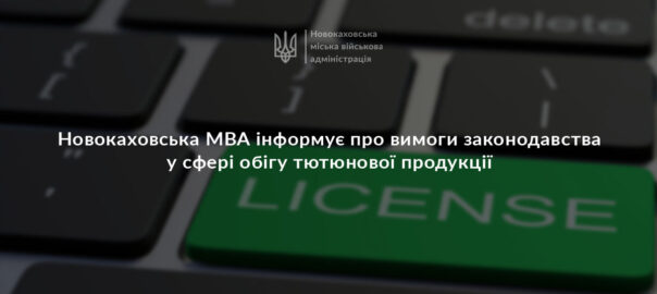 Новокаховська міська військова адміністрація інформує суб’єктів господарювання, землекористувачів та жителів громади про необхідність неухильного дотримання вимог законодавства України у разі здійснення діяльності, пов’язаної з вирощуванням, зберіганням, переробкою та реалізацією тютюну і тютюнової сировини.